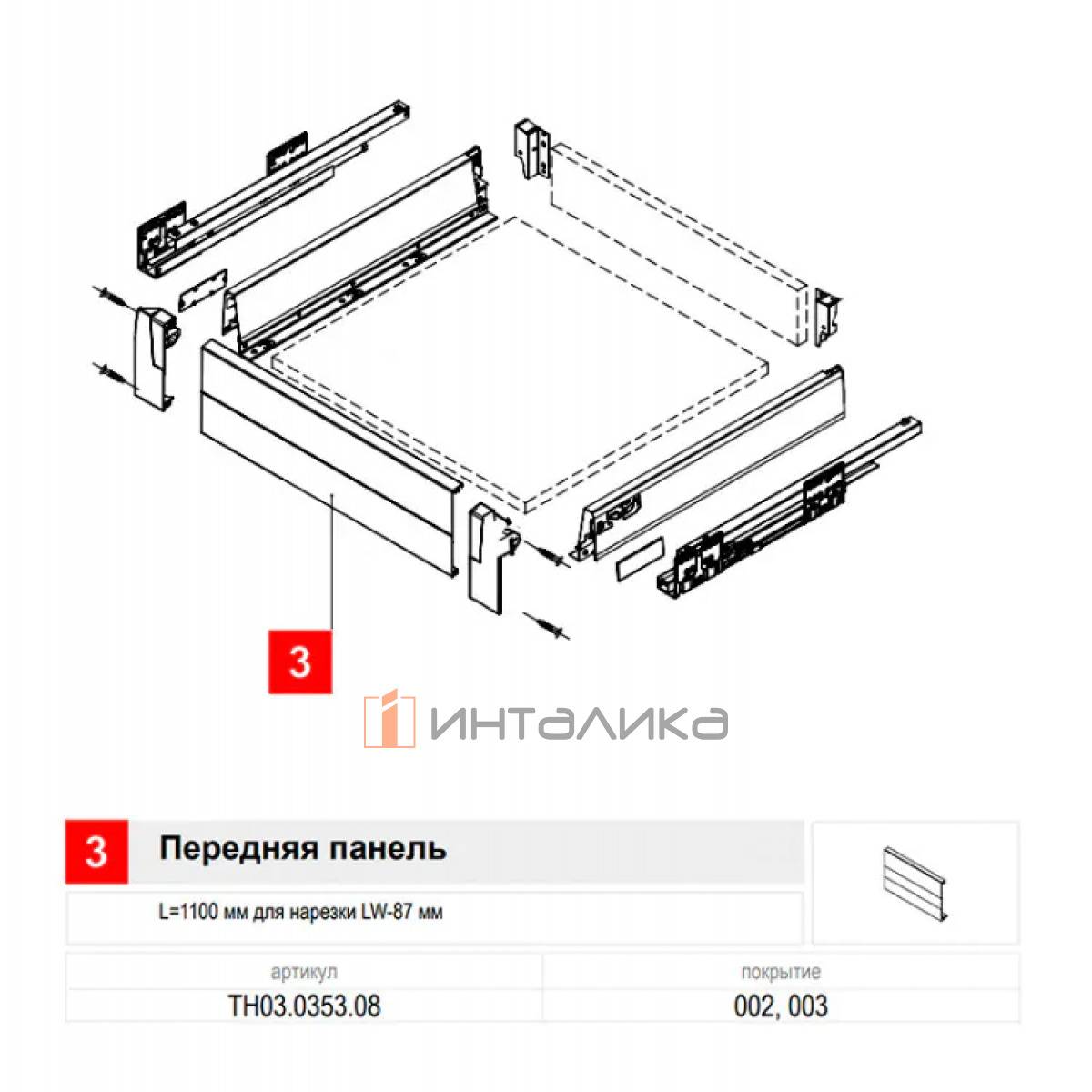 Передняя панель внутреннего ящика Rejs Comfort Box, L1100, металл, белый, TH03.0353.08.003