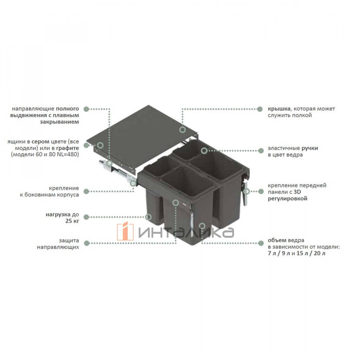 Механизм полного выдвижения обеспечивает комфортный доступ и упрощает процесс сортировки отходов
