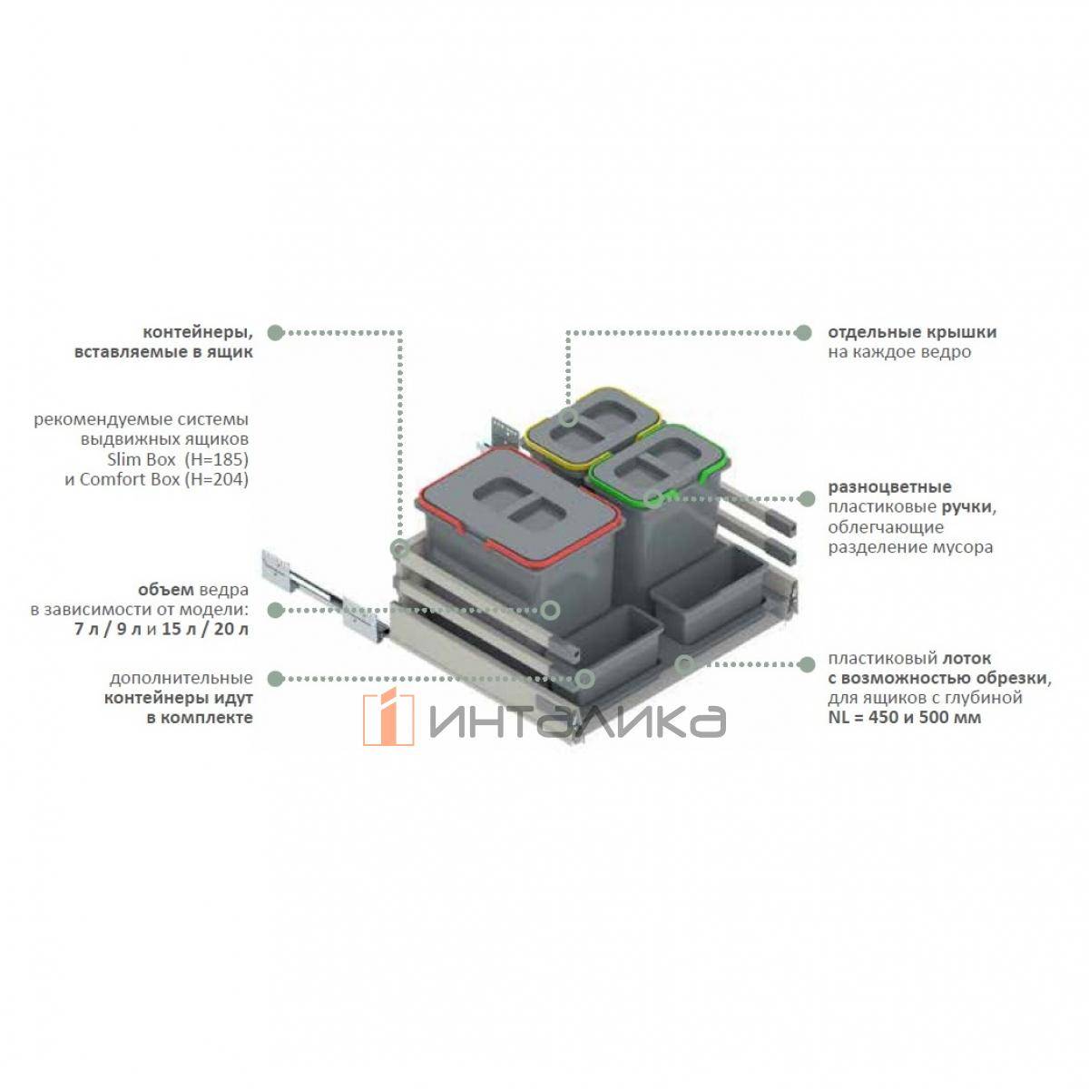 Объем контейнеров - 3х20 л