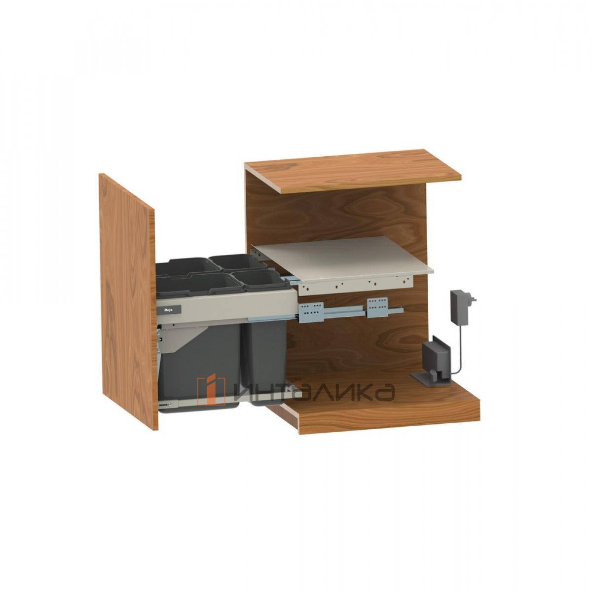 Подходит для одного ящика, например, ящика под мусор, оснащенного направляющими, установленными на боковые стенки шкафа
