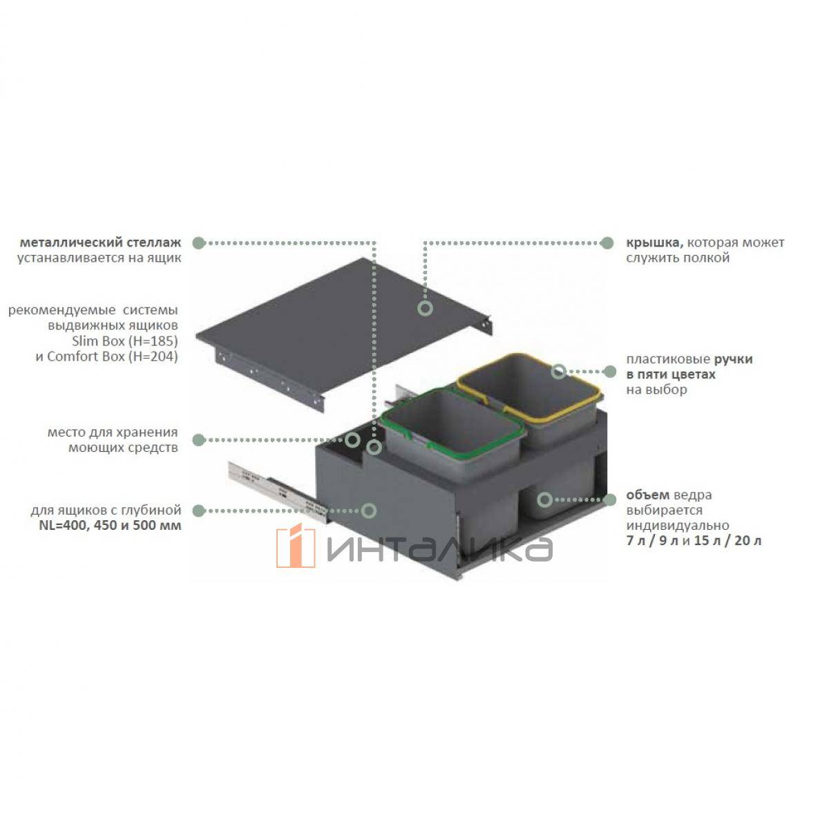 Примечание: контейнеры в комплект не входят, приобретаются отдельно