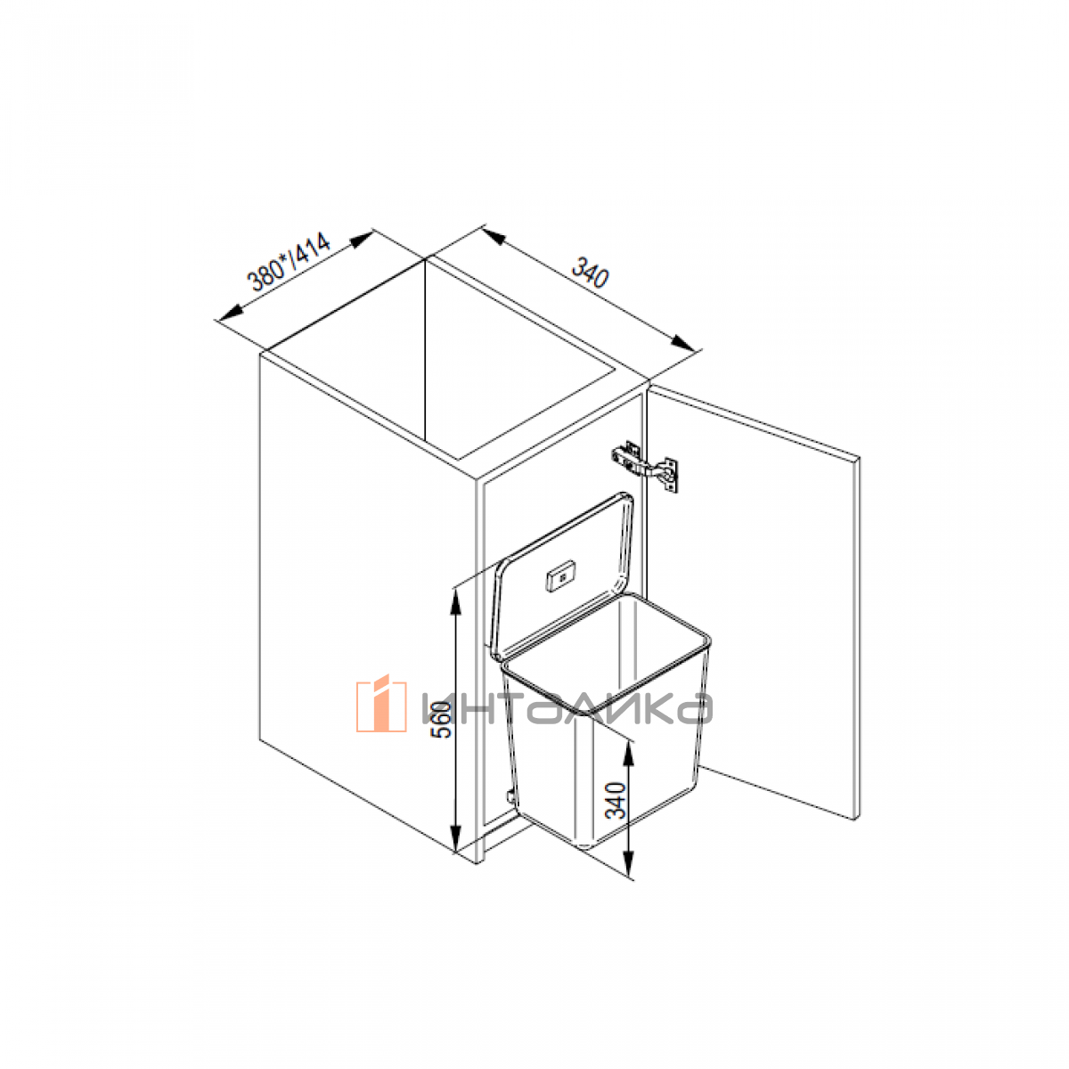 Система мусорных ведер Rejs Sesamo в корпус 450, ведро 1х16 л, пластик, серый, TE22.0701.05.000