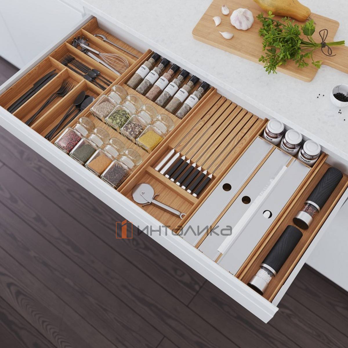 Модульные вставки позволяют рационально использовать пространство ящика, обеспечивают функциональность и гигиену