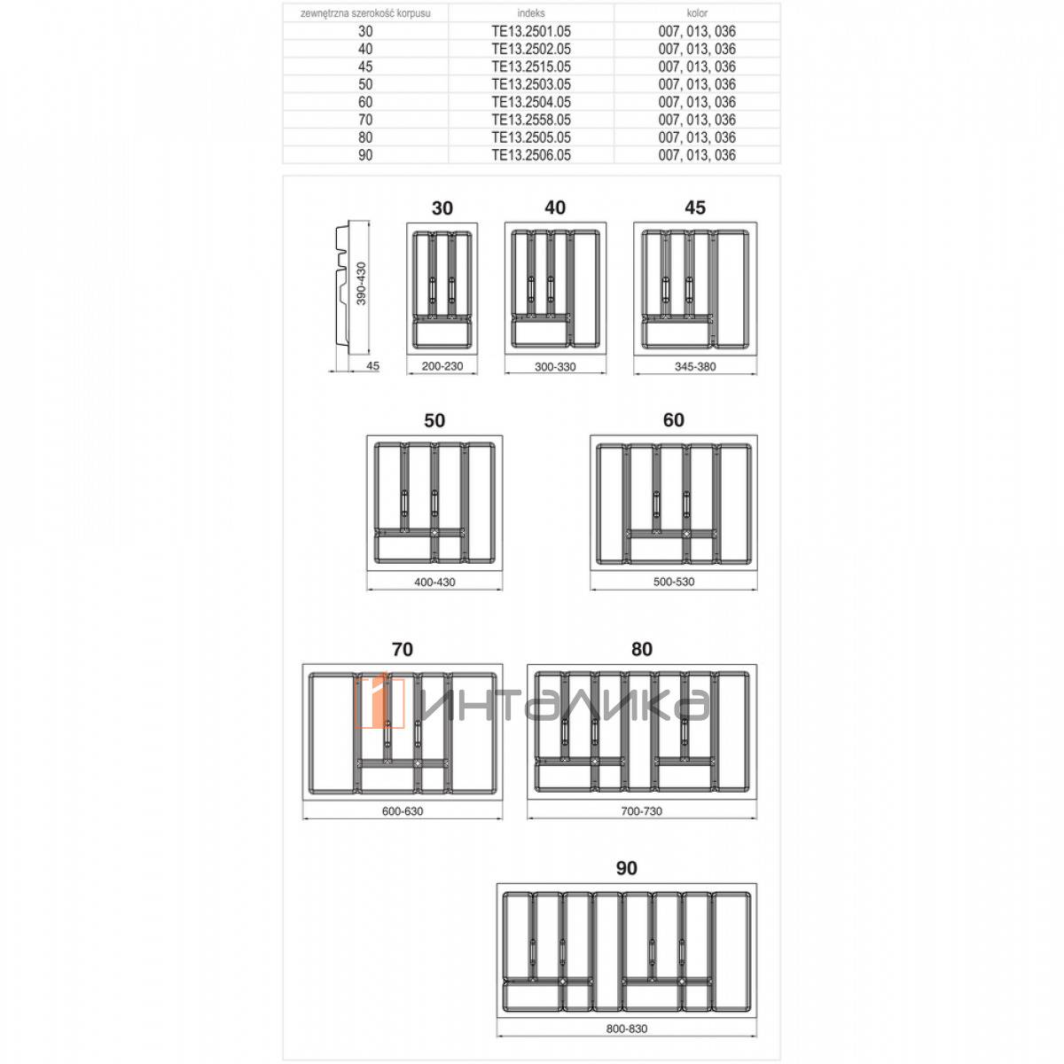 Габариты лотка: ширина - 400-430 мм, глубина - 390-430 мм, высота - 45 мм