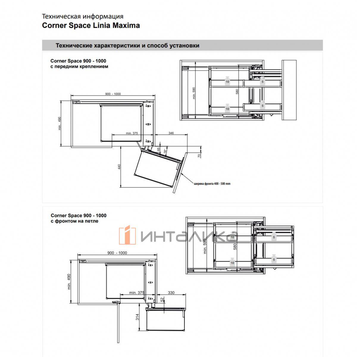 Угловая система REJS Space Linia Maxima Classic в корпус 900-1000 мм, в шкаф с выдвижным фасадом