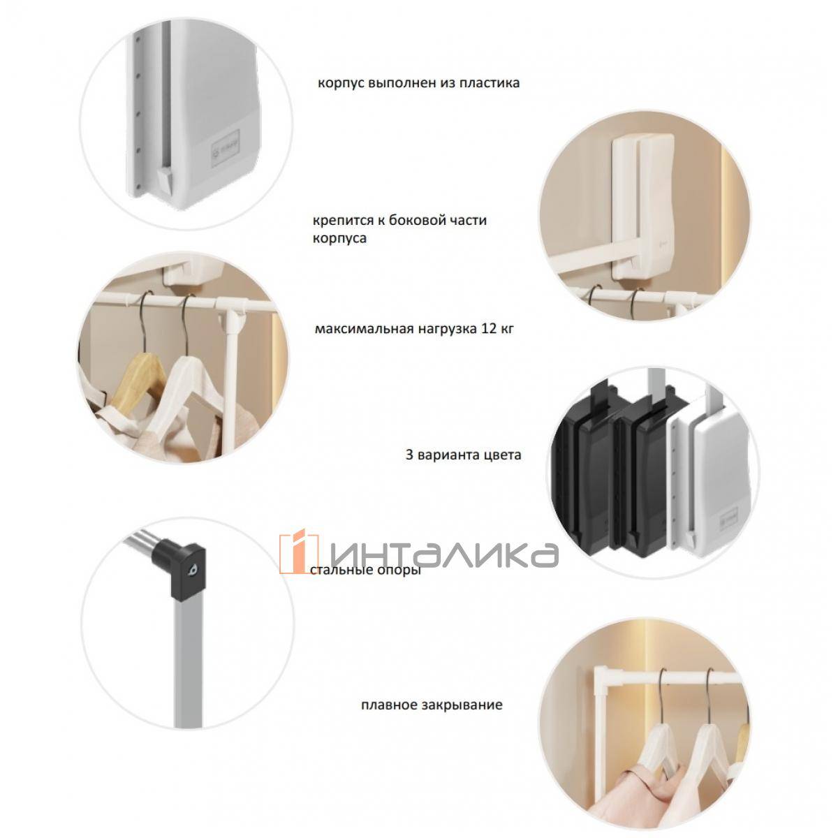 Обеспечивает комфортный доступ к верхней части гардероба, позволяя организованно хранить и легко доставать различные вещи на плечиках