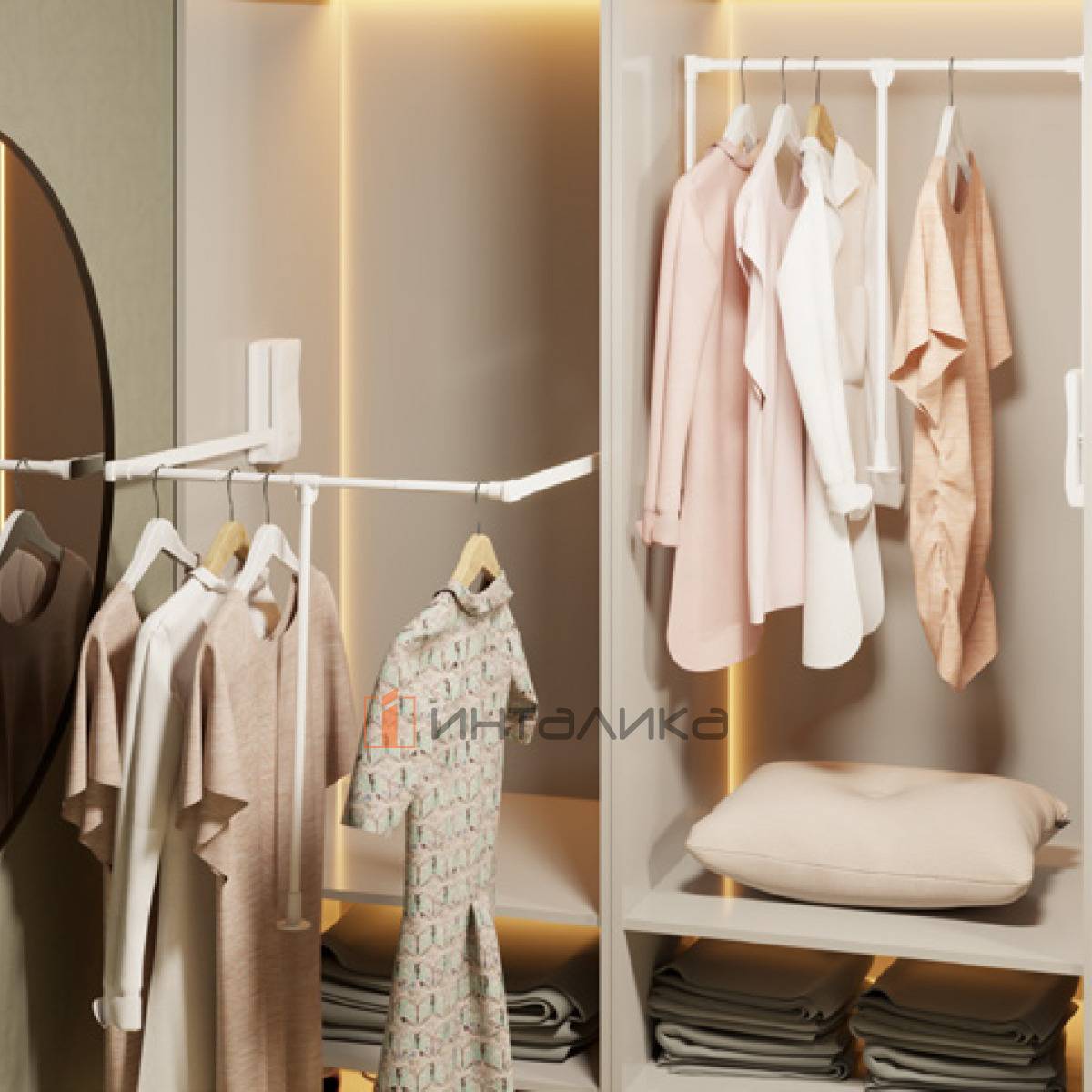 Обеспечивает комфортный доступ к верхней части гардероба, позволяя организованно хранить и легко доставать различные вещи на плечиках