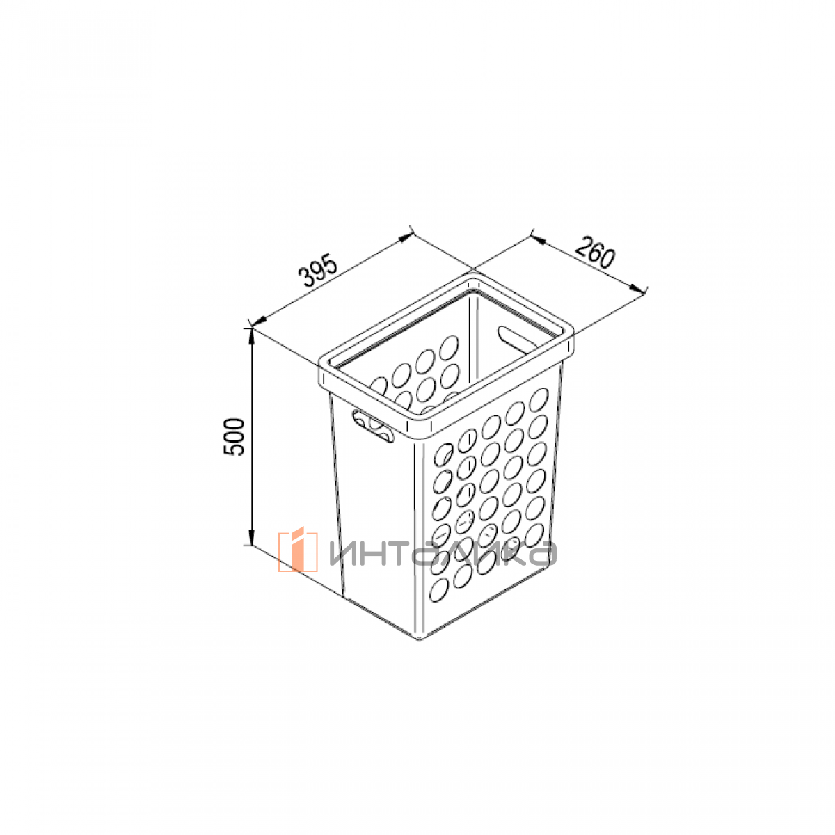 Габаритные размеры корзины - 395х260х500 мм