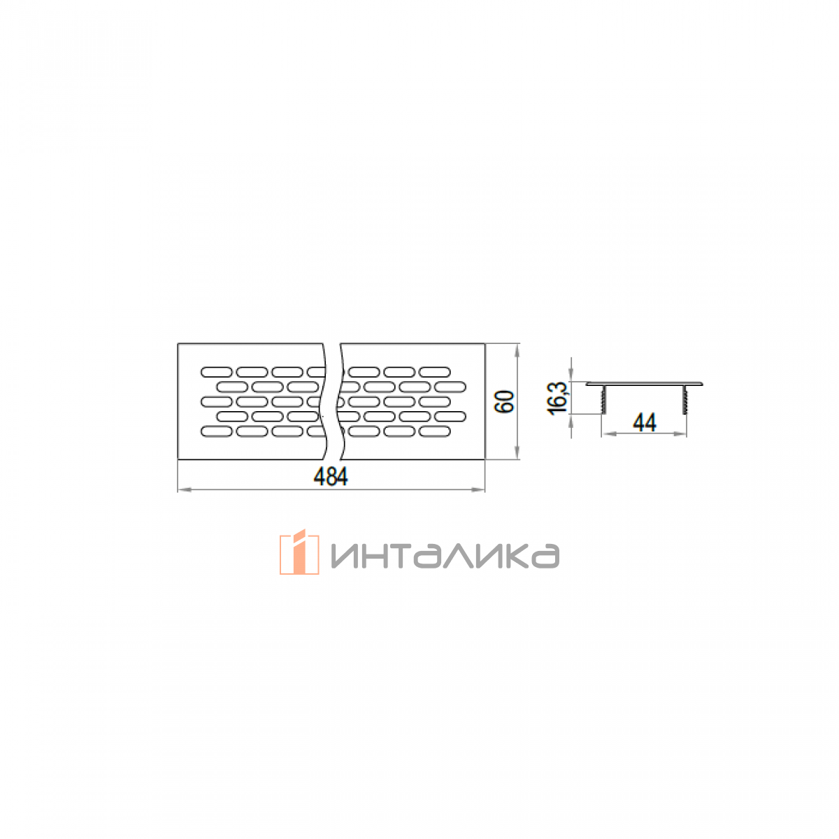 Вентиляционная решетка Rejs, 484x60 мм, алюминий, белый, TE12.0345.07.003
