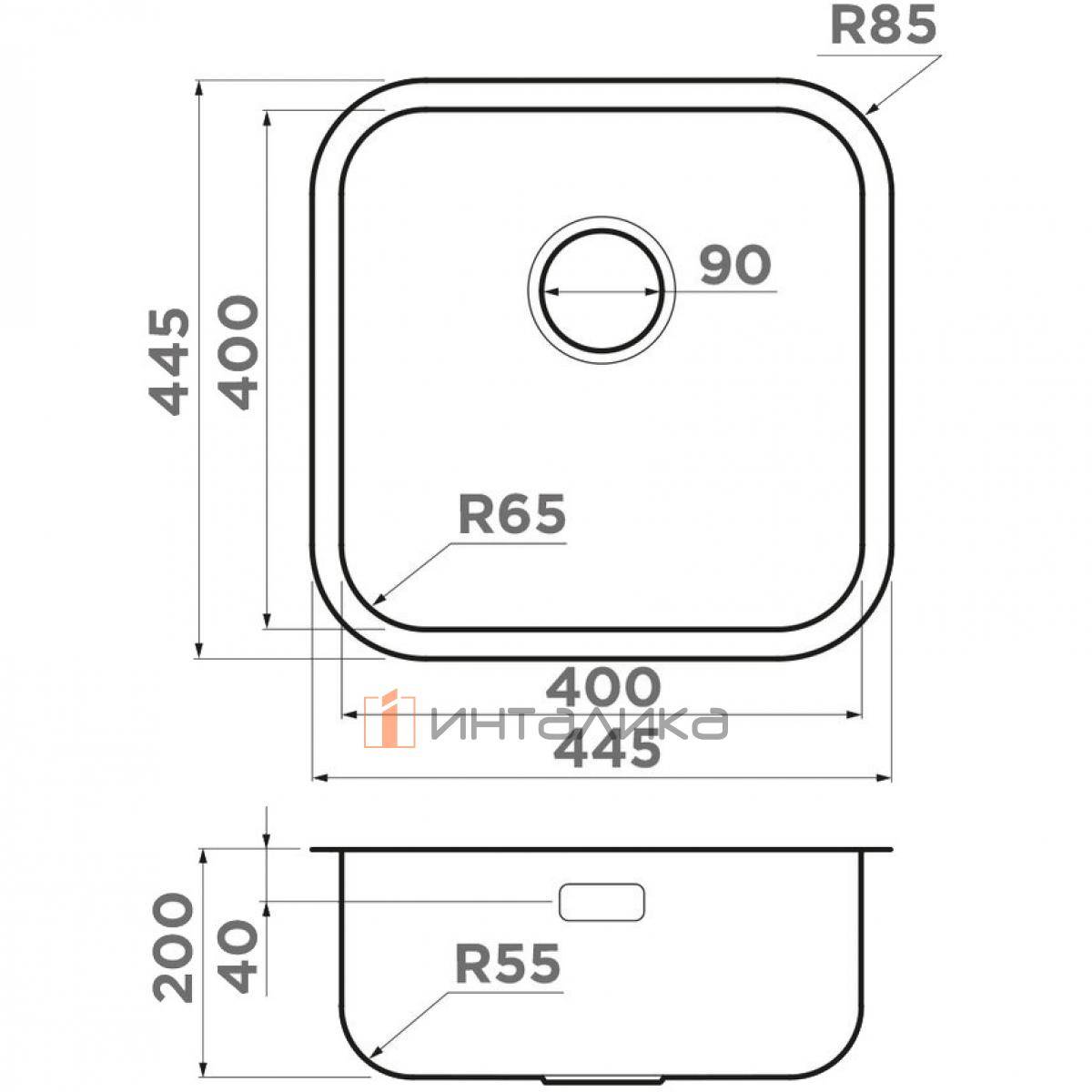 Мойка Omoikiri Omi 44 U/I Quadro нержавеющая сталь, 500, накладная, нержавеющая сталь, 4993494