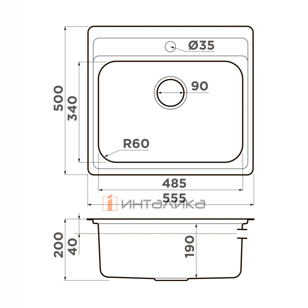 Мойка Omoikiri Ashi 56 нержавеющая сталь, 600, накладная, нержавеющая сталь, 4993449