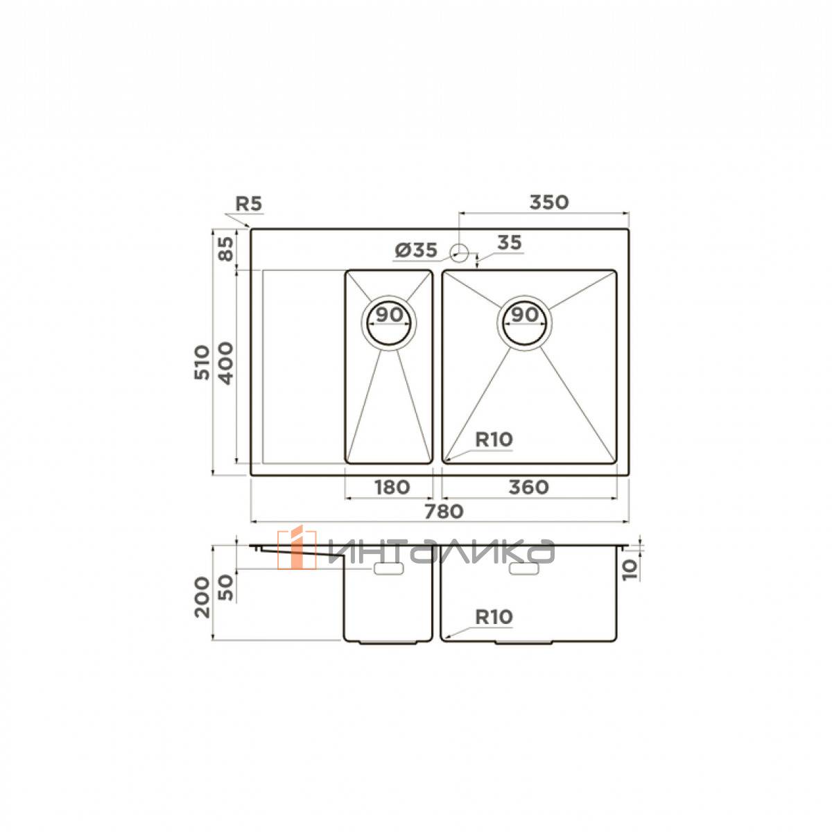 Мойка Omoikiri Akisame 78-2 R нержавеющая сталь, 800, накладная, вороненая сталь, 4973102