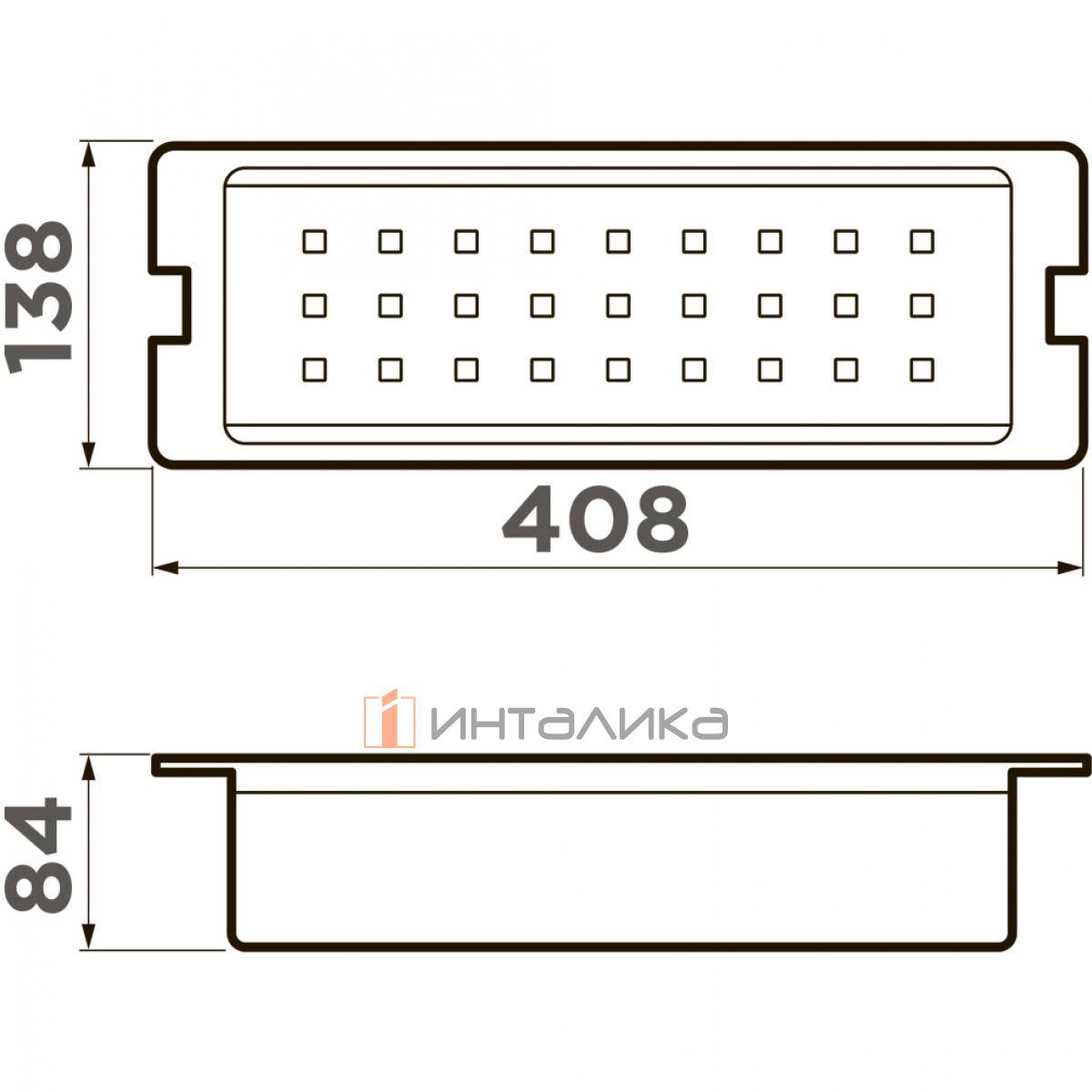 Габаритные размеры - 408х138х84 мм