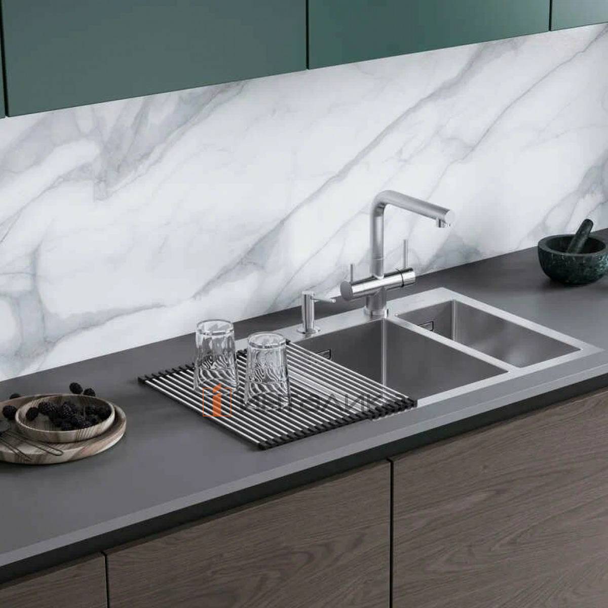 Элегантные коврики расстилаются на крыле мойки или на столешнице