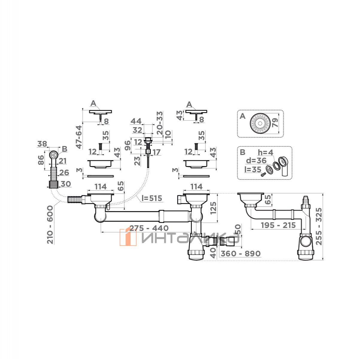 Перелив и выпуск со стоп-вентилем не допускает попадание мусора в сливное отверстие