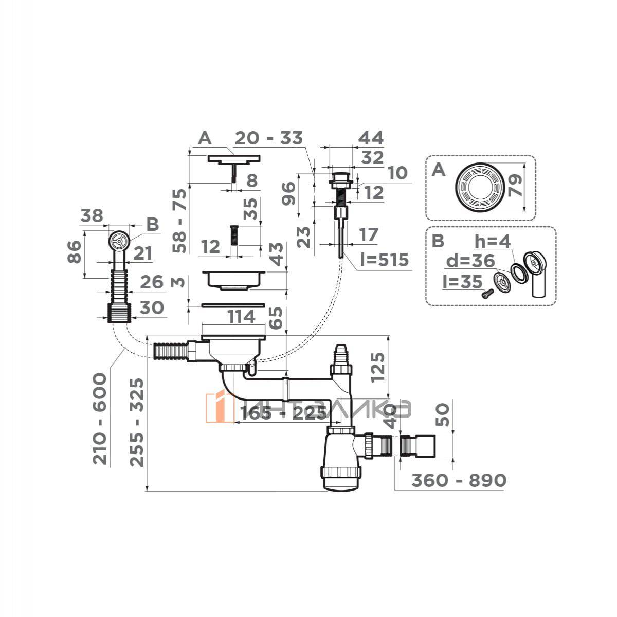 Арматура с клапаном-автоматом для одночашевых моек с круглым переливом