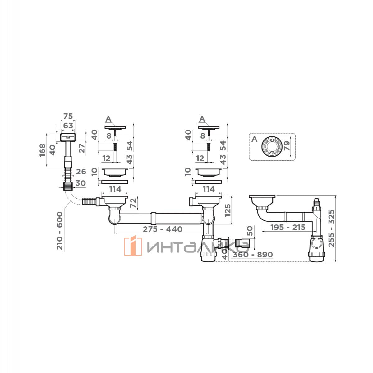 Арматура для полуторачашевых кухонных моек Omoikiri WK-1.5-S со скрытым прямоугольным переливом, нержавеющая сталь, 4998039