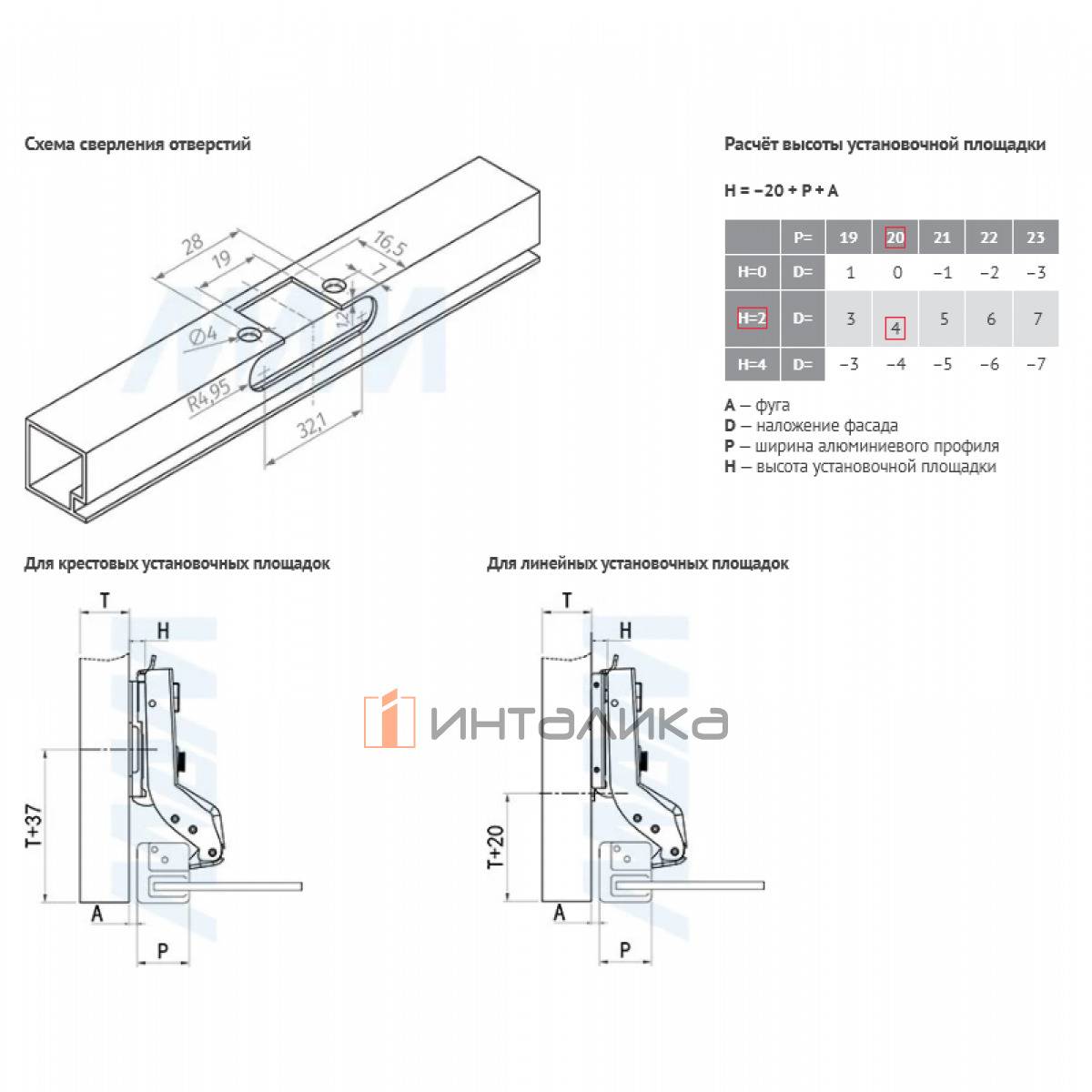 HARMONY PLUS петля с амортизатором вкладная (90/105), для ал. проф., стандартная, HB90INS-AL
