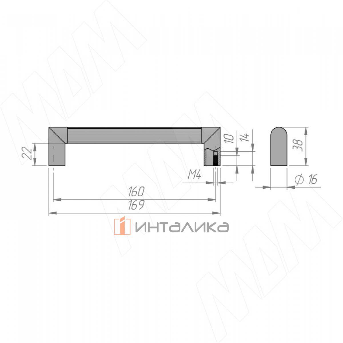 Ручка-релинг 160мм черный матовый, RH.06.160.BLM