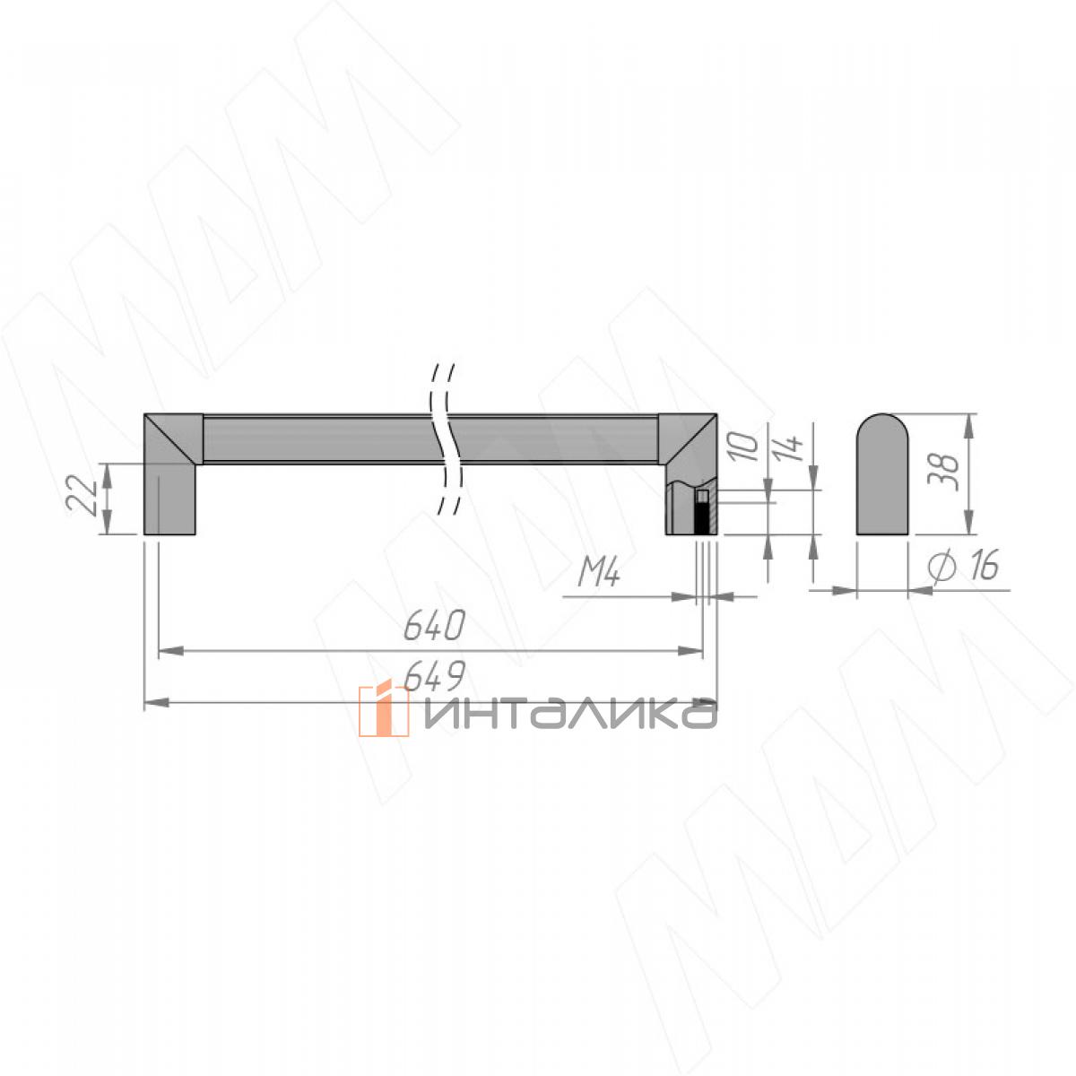 Ручка-релинг 640мм черный матовый, RH.06.640.BLM