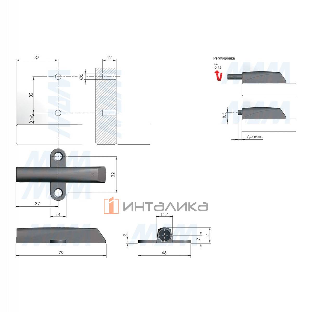 Для крепления корпуса толкателя рекомендуется использовать евровинты 6,3×13 мм
