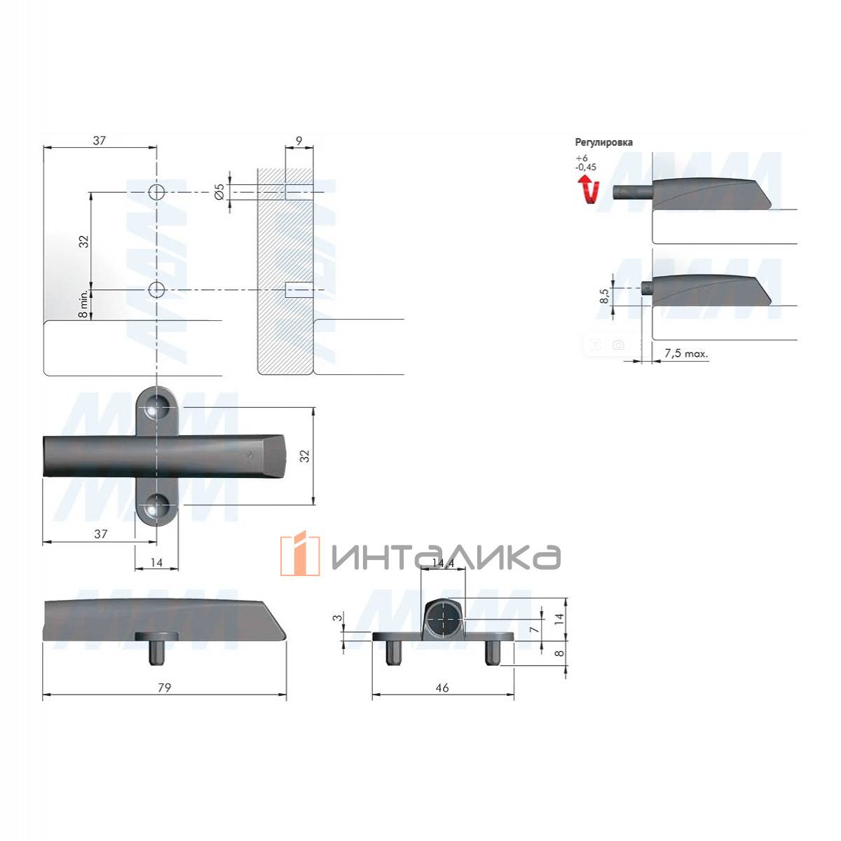 Применение: для фасадов с петлями без пружины или с петлями с обратной пружиной