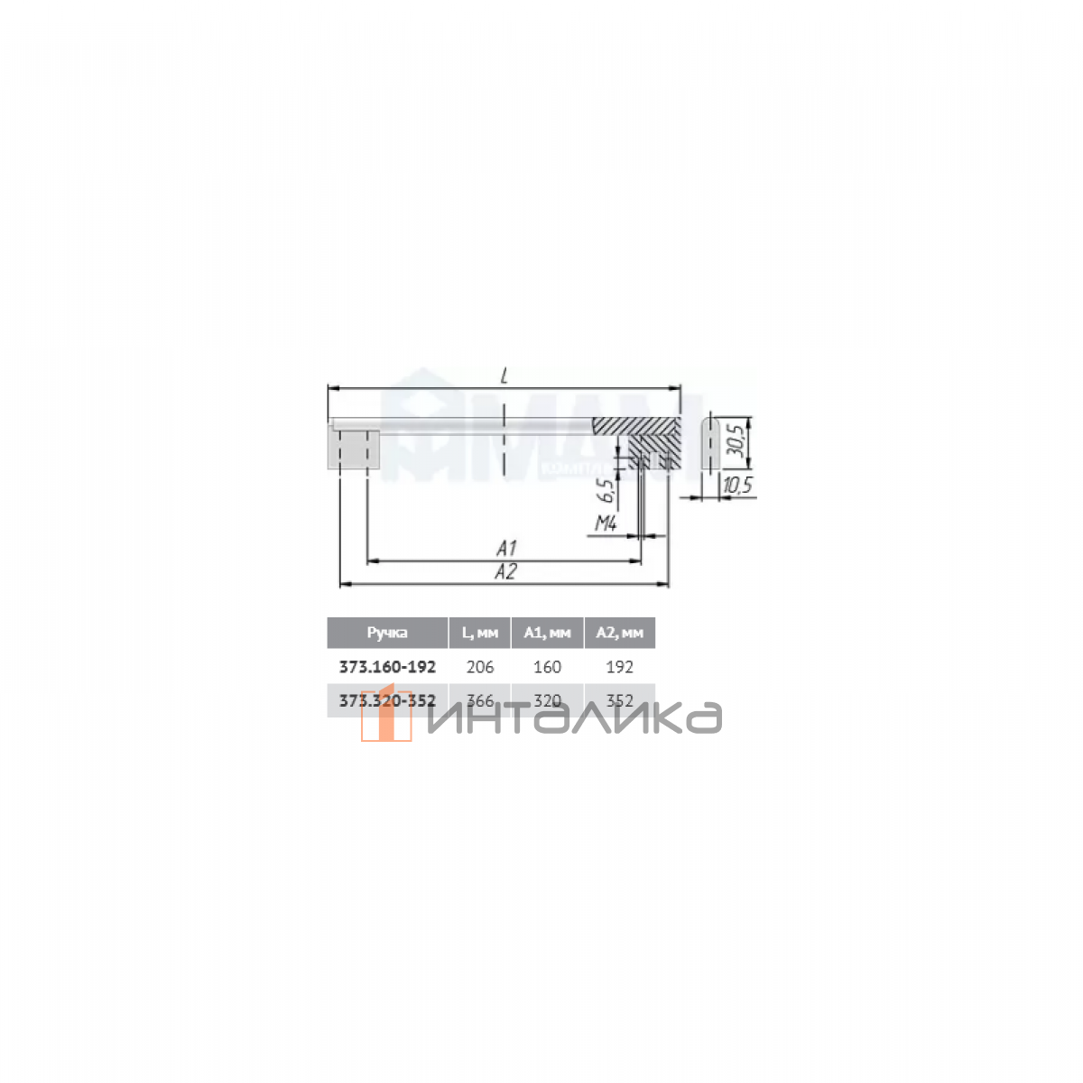 Ручка-рейлинг 320/352мм (L=366мм) нержавеющая сталь, 373.320-352.302NS