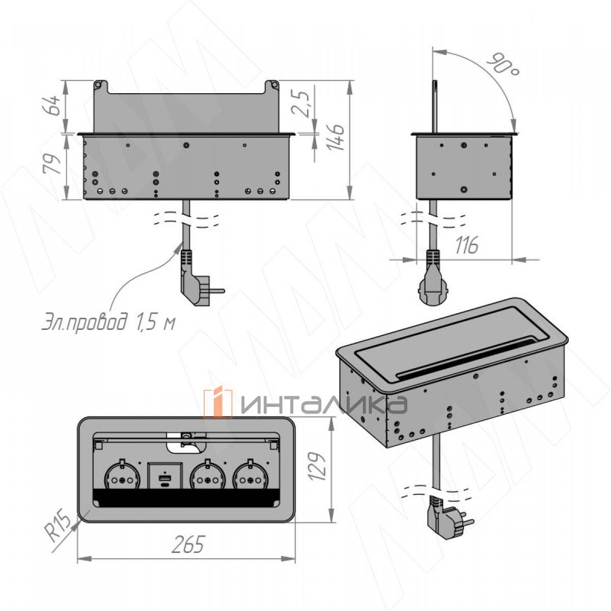 Блоки розеток с откидной крышкой сочетают в себе функционал заглушки для проводов и источника питания