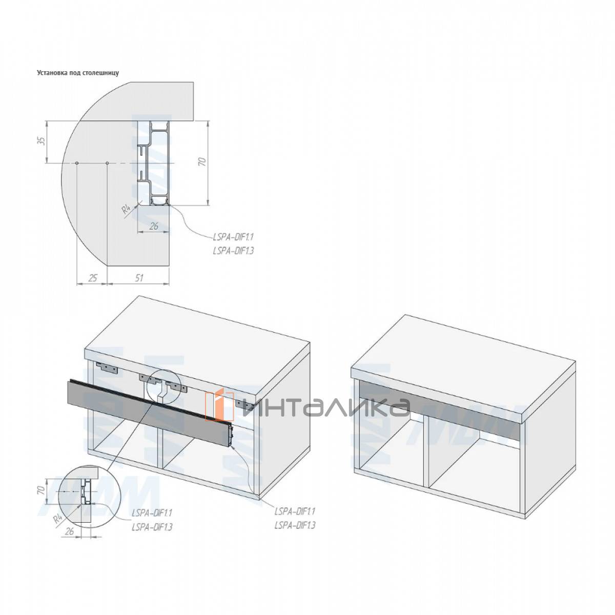 Примечание: используется со светодиодными лентами шириной 8 и 10 мм; рекомендуется использовать с рассеивателями LSPA-DIF1.1 и LSPA-DIF1.3;