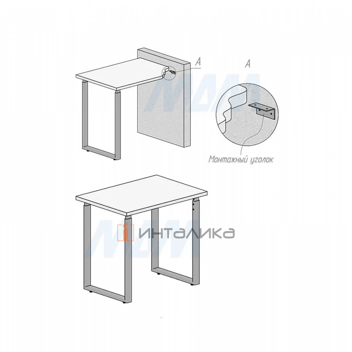 Пилар опора для стола П-образная, 60х30, H820-870 (+10 мм), серый металлик, 1шт., ПТ60X30/820-870.GRM