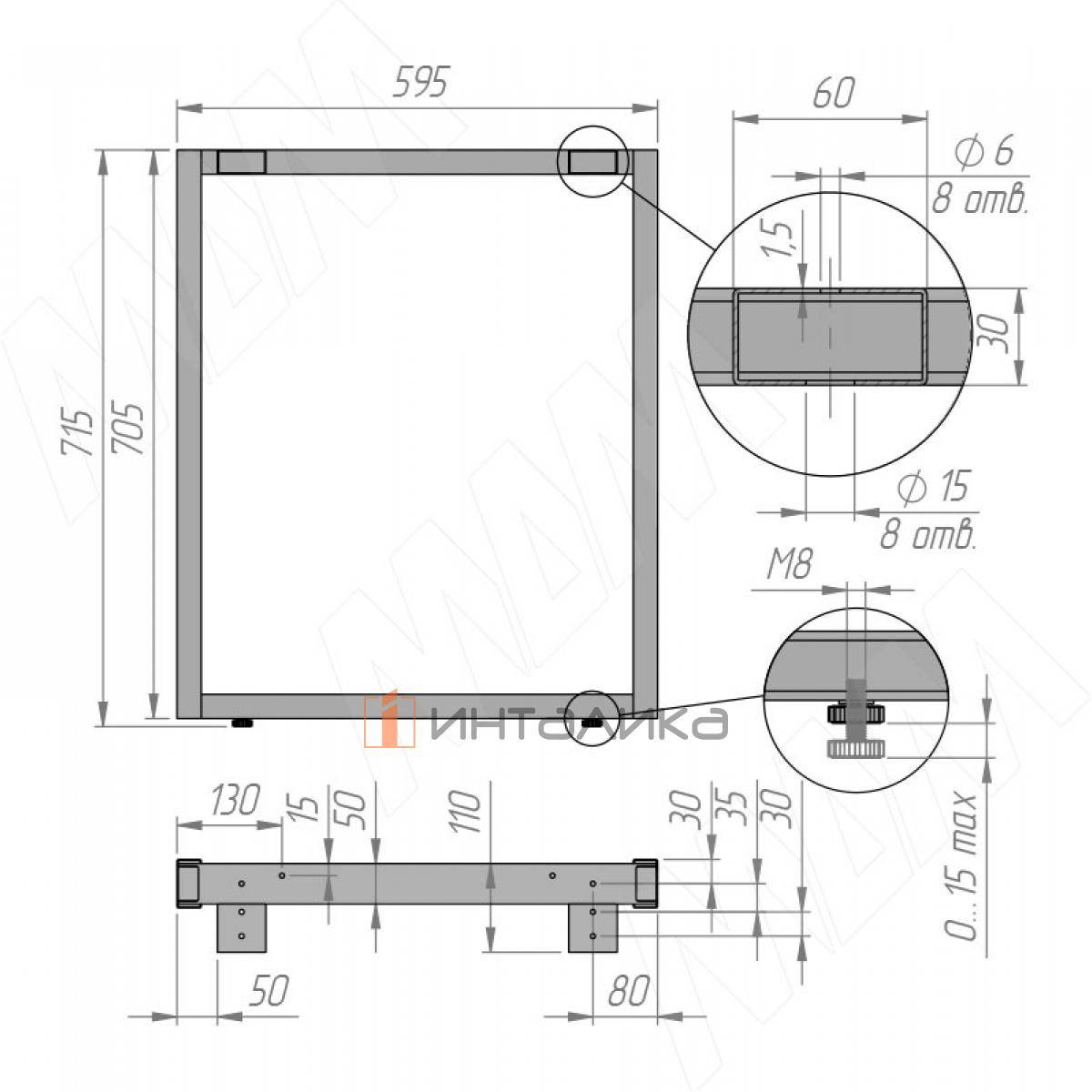 Регулировка: высота опоры + 15 мм