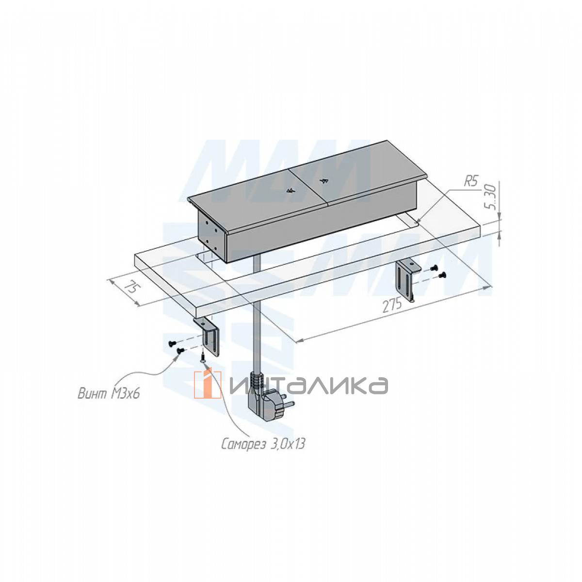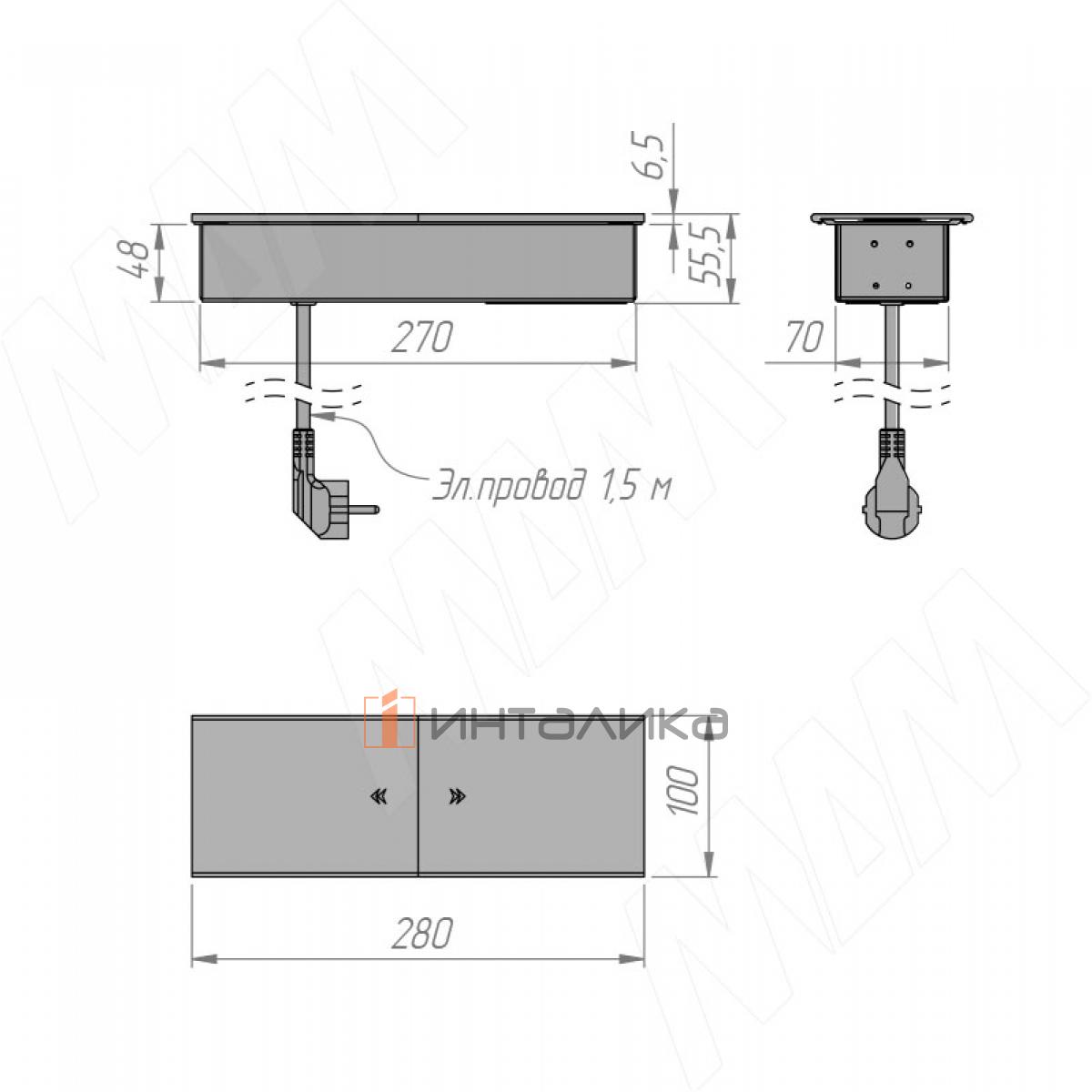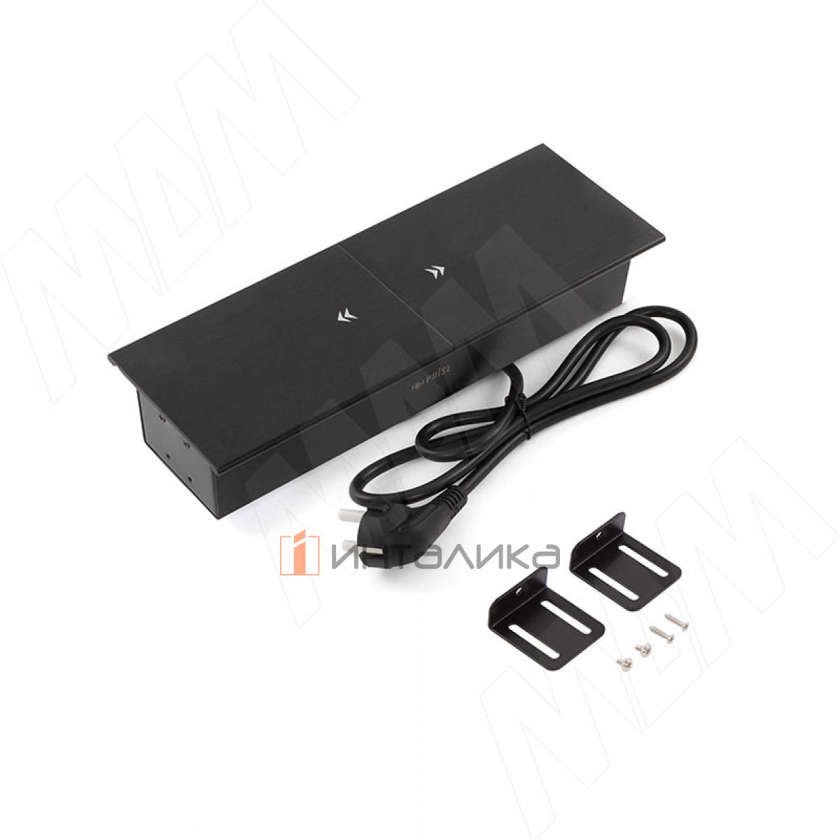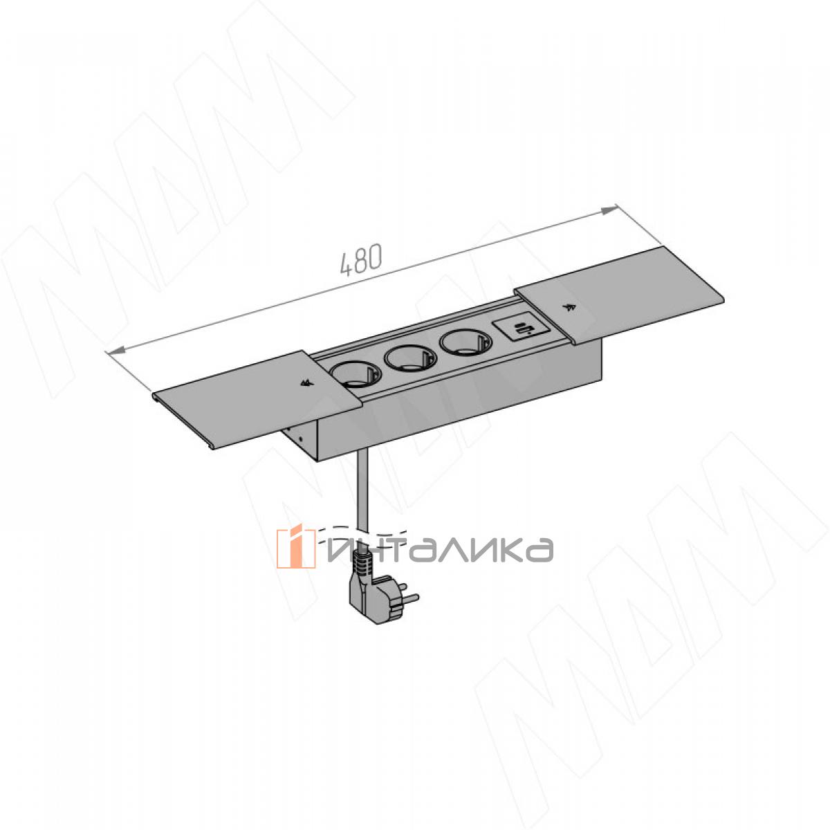 Для доступа к розеткам 2 крышки бесшумно раздвигаются в стороны, при этом специальный уплотнитель защищает поверхность стола от царапин