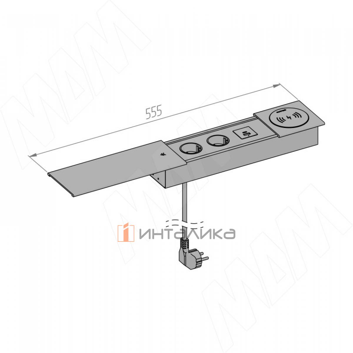 Для доступа к розеткам крышка бесшумно сдвигается в сторону, при этом специальный уплотнитель защищает поверхность стола от царапин