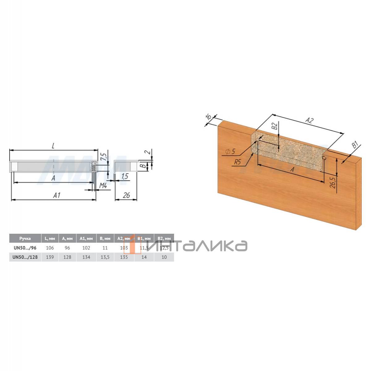 Ручка-раковина 128мм хром, UN5004/128