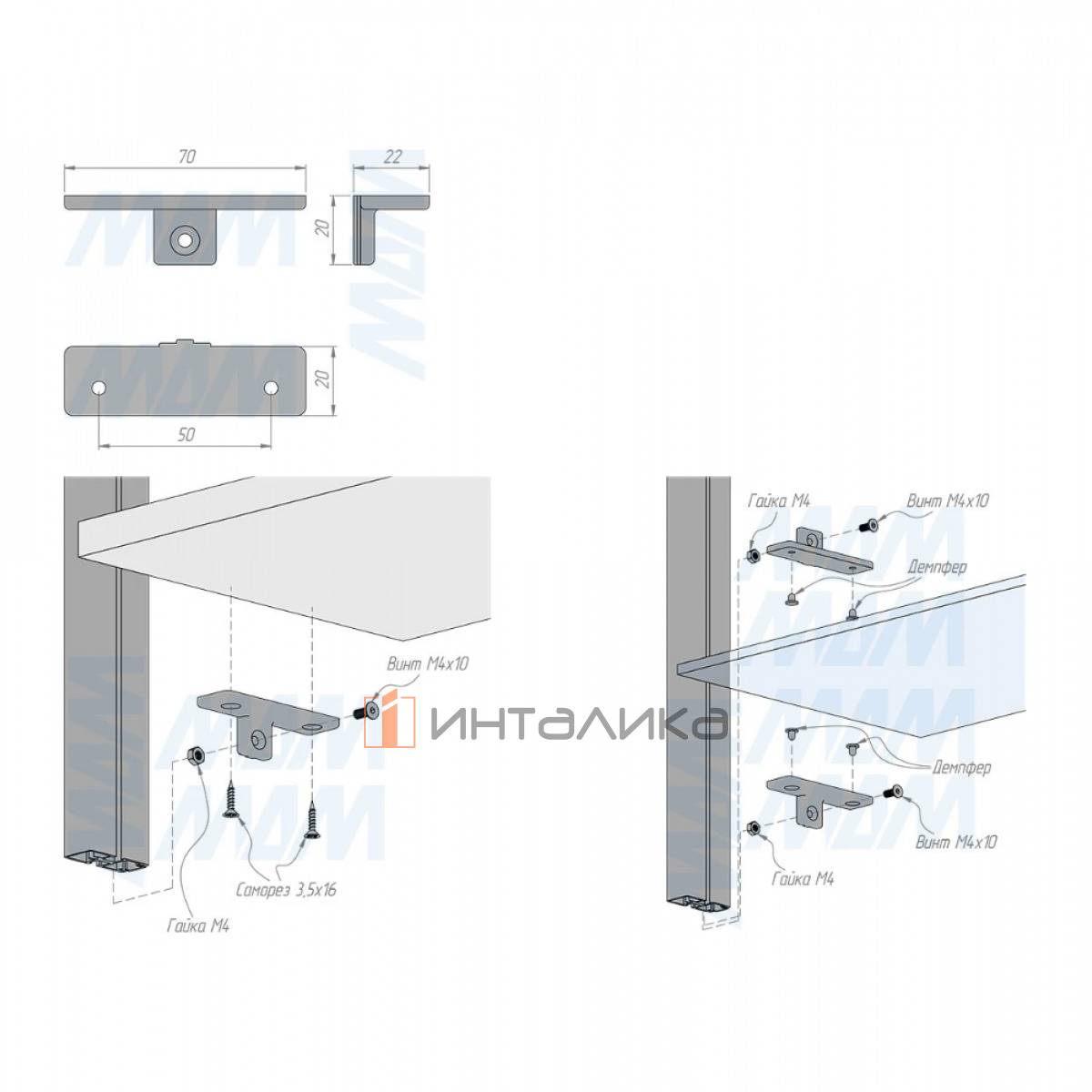 Комплектация: полкодержатель (комплект на полку), пластиковый демпфер (для полки из стекла), крепёж