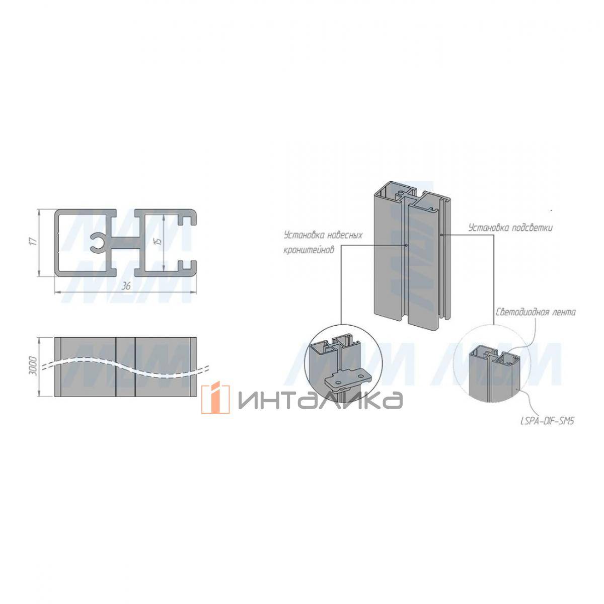 UNICO Несущий профиль, серебро (анод), L-3000 мм, UN795PRAL