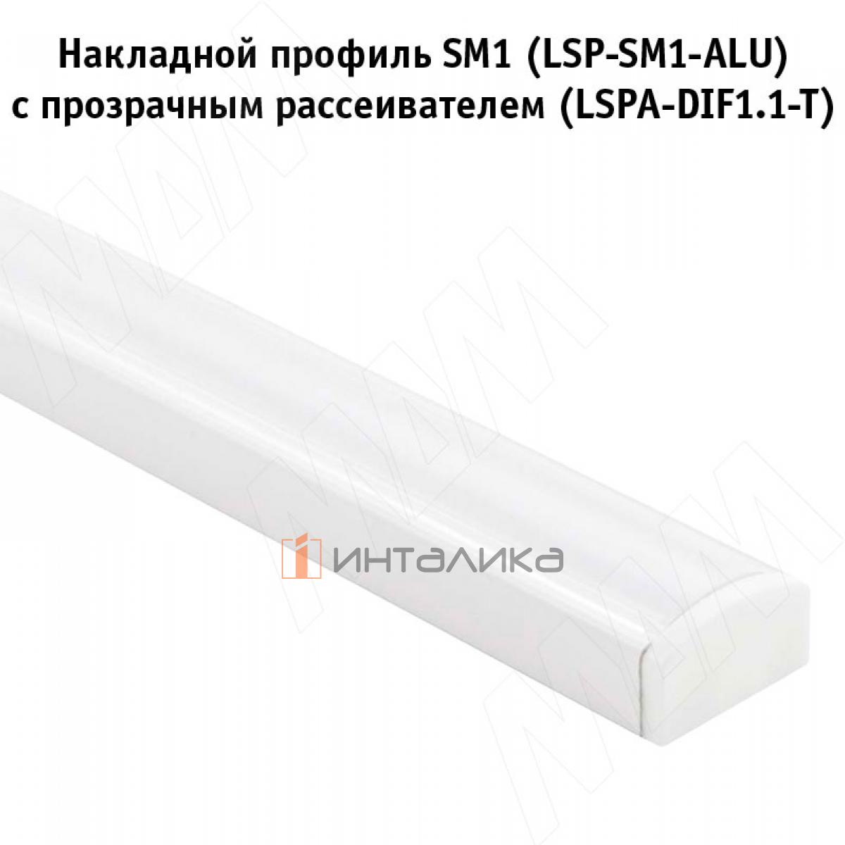 Профиль SM1, накладной, белый матовый, 16х7,5мм, L-6100, LSP-SM1-ALU-6.1-WHM