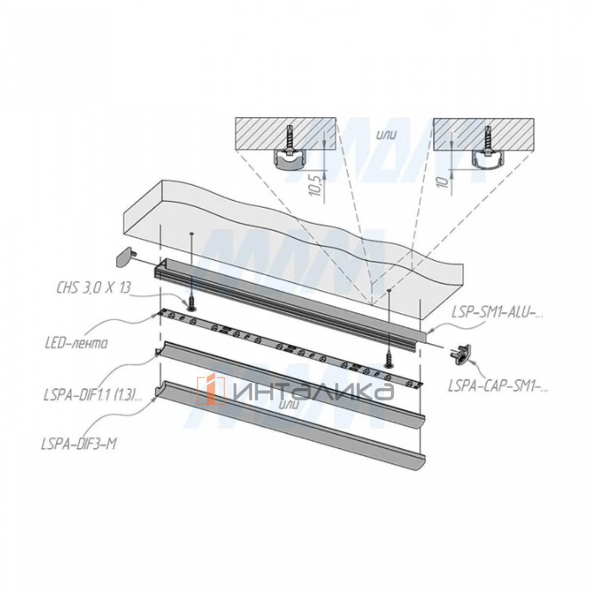 Применение: предназначен для установки светодиодной ленты шириной до 12 мм