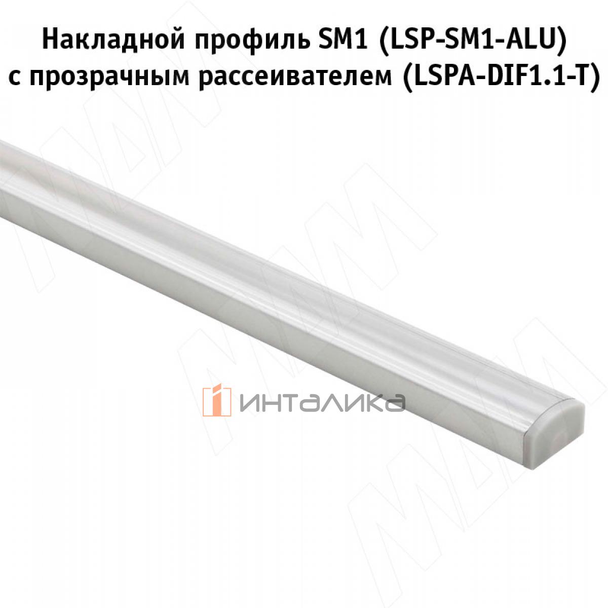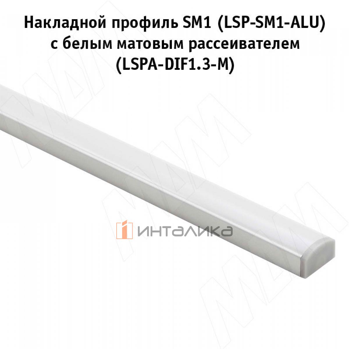 Профиль SM1, накладной, серебро, 16х7,5мм, L-6100, LSP-SM1-ALU-6.1-AL