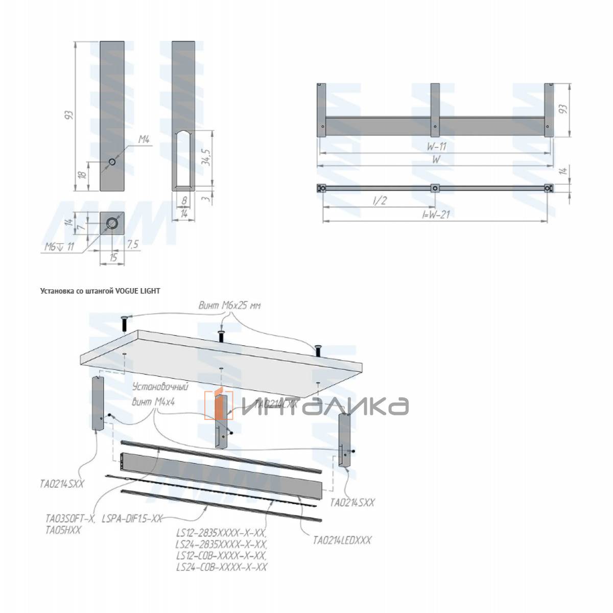 Новое поколение штангодержателей для прямоугольных штанг VOGUE и VOGUE LIGHT с креплением к полке.