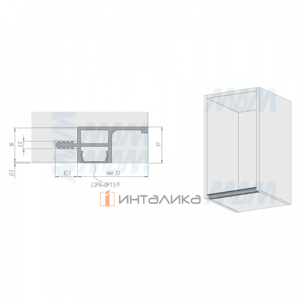 Примечание: горизонтальная установка для корпуса верхнего яруса; используется со светодиодными лентами шириной 8 и 10 мм