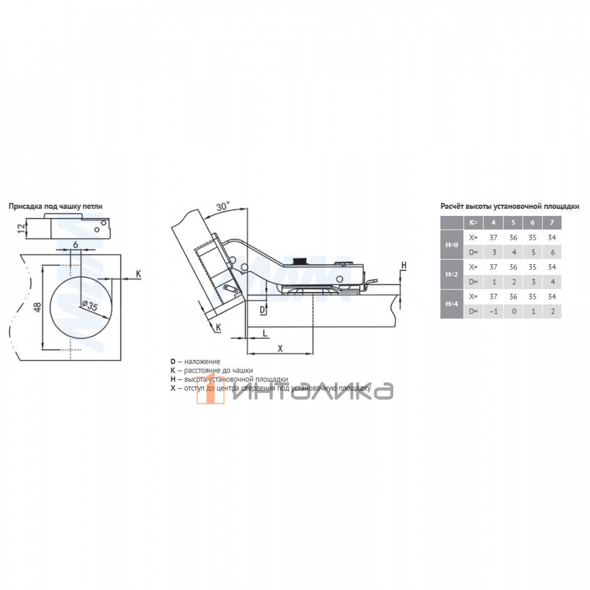 HARMONY PLUS петля без амортизатора угловая (+30/95), HB30-ND