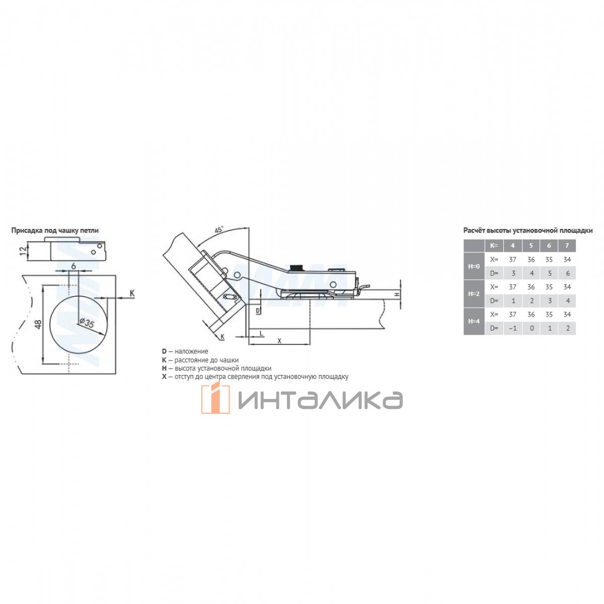 HARMONY PLUS петля без пружины угловая (+45/95), HB45-NDS