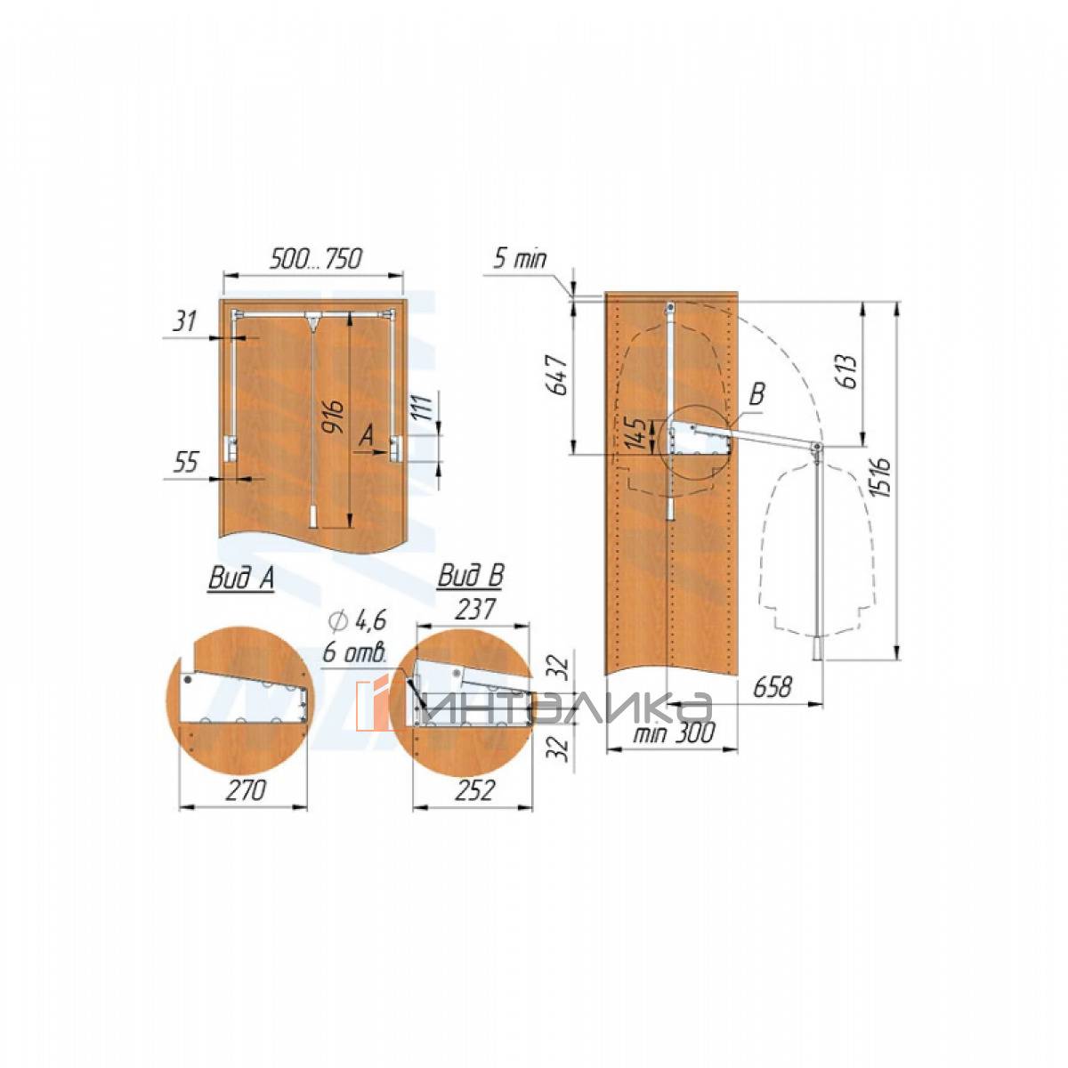 Пантограф 50-75 см, нагр.10 кг, серый, LIFT300-5075