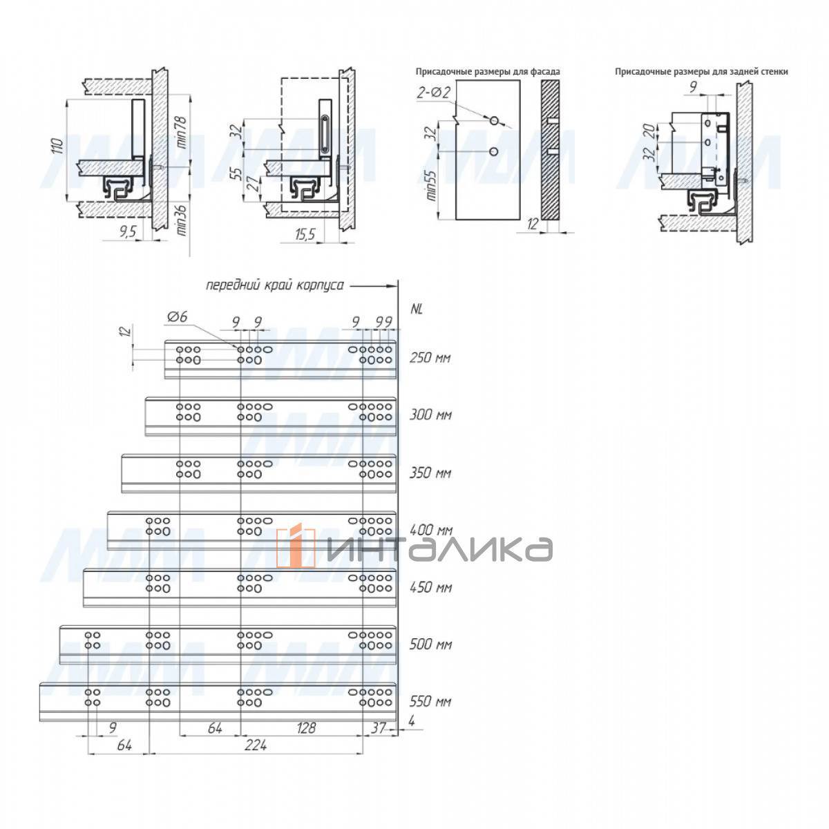 LS BOX PRO комплект ящика 550 мм, боковины h88 мм, плавное закрывание, серый металлик, LSB.PRO.LS88550G