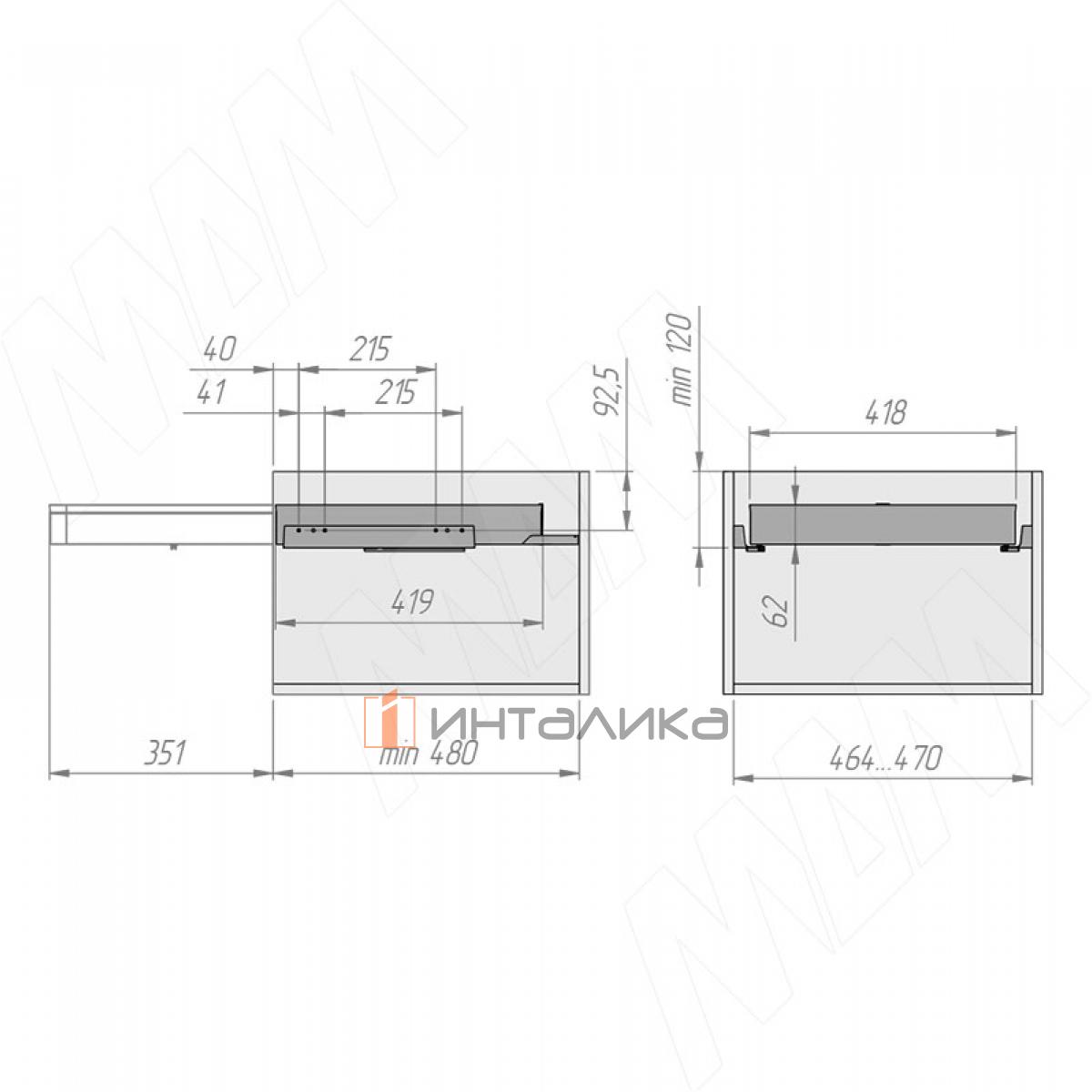 Регулировка: 8 мм (осуществляется за счёт расположения направляющих в рамке)