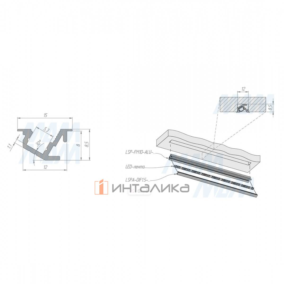 Применение: угловой врезной профиль предназначен для установки светодиодной ленты шириной до 5 мм