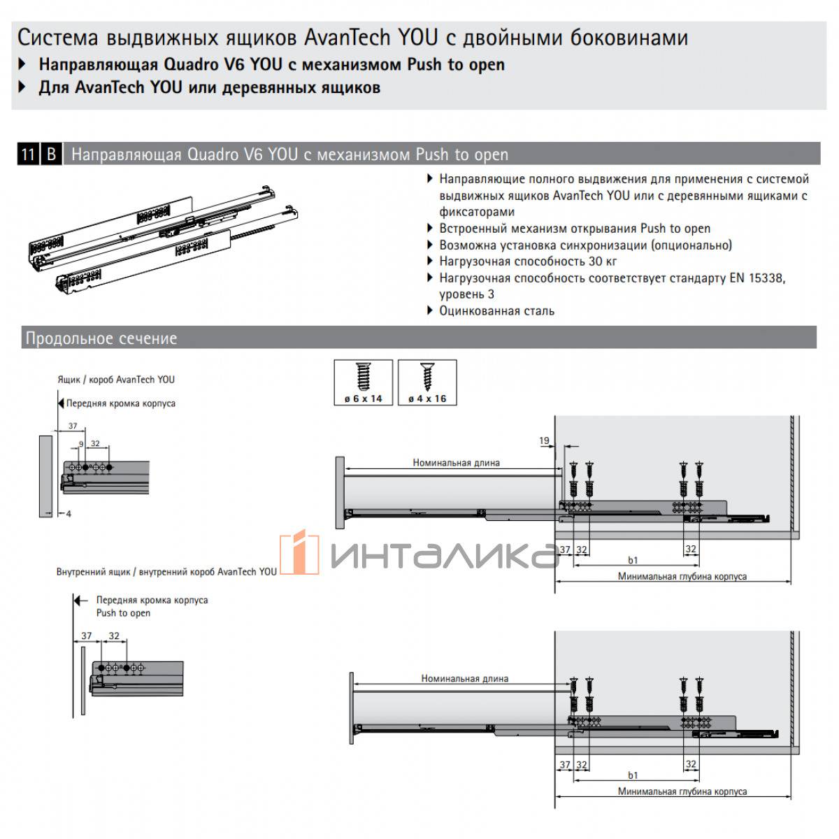 • Направляющие полного выдвижения для применения с системой выдвижных ящиков AvanTech YOU или с деревянными ящиками с фиксаторами