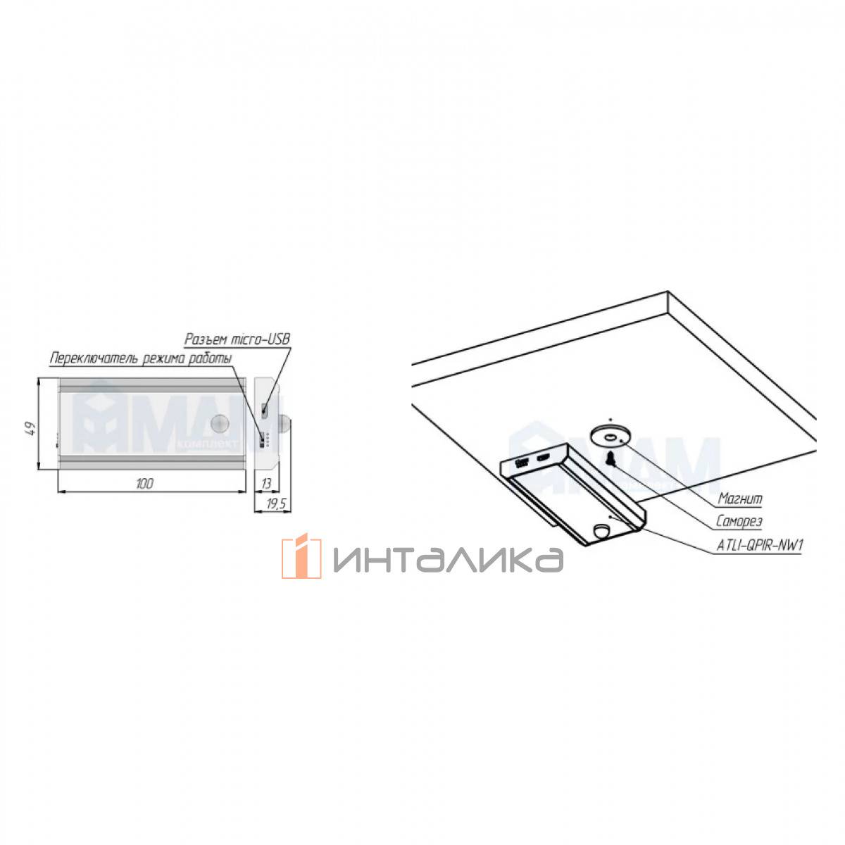 Комплектация: светильник, ответная магнитная часть (с клеевым основанием), крепежный винт, провод micro-USB