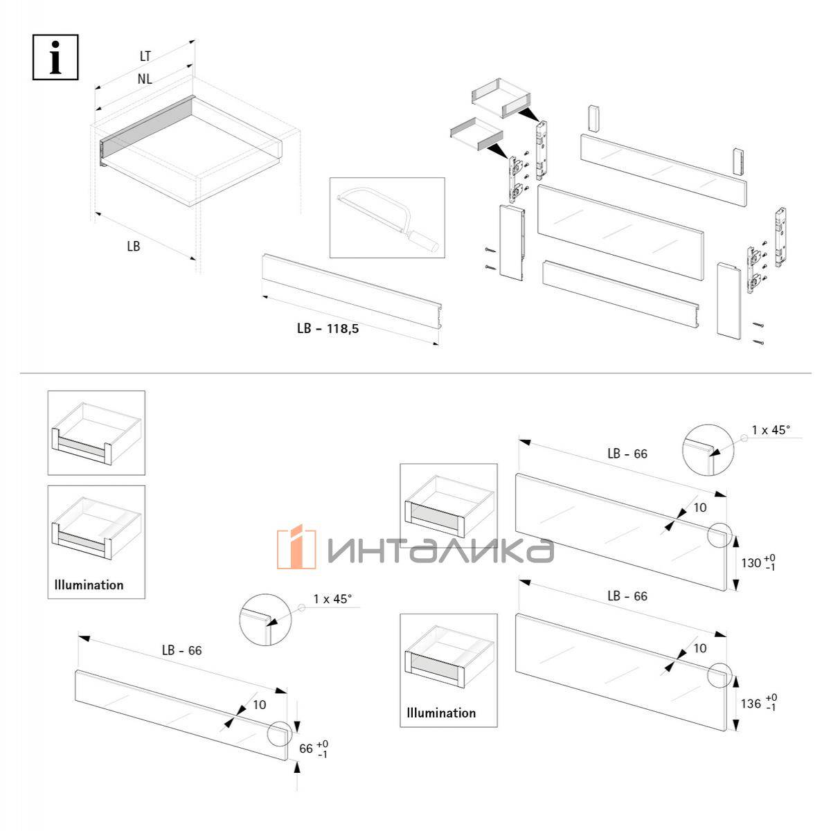 Примечание: опорный профиль для передней панели внутреннего ящика с возможностью индивидуализации заказывается отдельно